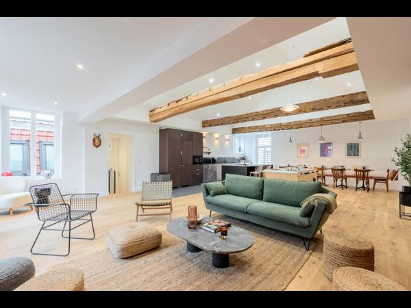 🏡 Magnifique maison typique du vieux Lille, rénovée avec goûts. La maison possède des grands espaces communs, une cuisine toute équipée, une salle à manger, un grand salon, un espace de coworking et une buanderie.