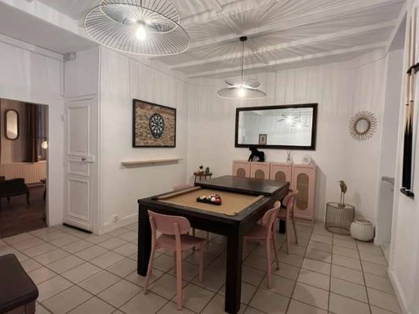 • d’une cour spacieuse privative 🌿 💐 aménagée d’une table pour profiter du ☀️ et de moments de convivialité • d’une grande salle à manger 🍽️ avec table à manger convertible en billard 🎱 et un piano vintage 🎹 pour faire parler ta créativité • d’une cuisine tout équipée : plaques de cuisson 🍳, vaisselle🍴, machine à café dosettes ☕️, bouilloire🫖, gril-pain🍞, micro-onde, four 🍕et lave vaisselle, sans parler de l’appareil à raclette 🧀, à crêpes 🥞, à croques monsieur 🥪 et à gaufres 🧇🤤 • d’une buanderie tout équipée 🧺: frigo avec congélateur 🧊, machine à laver, sèche linge, table et fer à repasser, aspirateur 💨 • d’un salon avec jeux de société 🎲🃏 • de deux Wc séparés 🧻 (un au RDC et un au 1er étage)