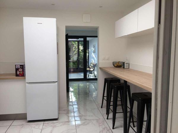 Cuisine 12 m2, salon/salle à manger 16 m2, buanderie 10 m2 (lave linge et sèche linge), WC commun au rez-de-chaussée (pour chambres 2 à 5), jardin 80 m2 orienté Sud, arboré et sans vis-à-vis. À 2 min à pied de l'arrêt de bus Coq français, à 10 min du Tram Alfred Mongy, 15 min du Centre hospitalier Victor Provo.