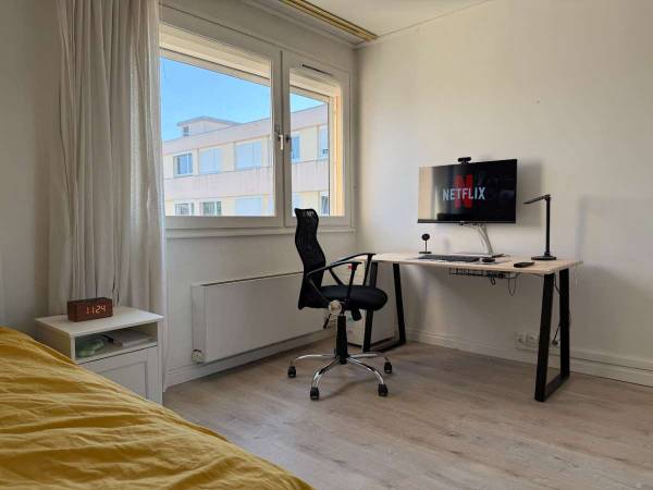 Votre chambre privative : 🖥️ Bureau équipé avec station d’accueil pour ordi (grand écran 32", clavier, souris, prise Ethernet) 📺 L’écran est aussi une Smart TV (Netflix, Disney+, YouTube, TNT) 🛏️ Draps et serviettes de douche fournis 📦 Rangements avec penderies, enceinte Bluetooth, chargeurs 🌇 Baie vitrée, vue dégagée sur cour et rue calme, l’appartement est au dernier étage