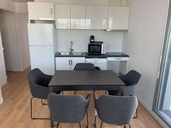 Caractéristiques de l’appartement : 93 m² entièrement aménagés pour une colocation confortable 6 pièces : 5 chambres spacieuses 2 salles de bain + 2 WC séparés Cuisine ouverte sur le séjour, entièrement équipée : plaques de cuisson, four, réfrigérateur, lave-vaisselle, micro-ondes, machine à café, vaisselle et couverts. Salon convivial avec canapé, buffet, TV, table et chaises de salle à manger Chambres équipées : lit, couette, oreillers, draps, serviettes, armoire/dressing, table de chevet et bureau si besoin Équipements complémentaires : Fibre Internet, lave-linge, aspirateur, table et fer à repasser, étendoir Possibilité de louer une place de parking en sous-sol (70 €/mois) L’appartement dispose d’un espace de vie convivial, d’une cuisine équipée et de chambres aménagées pour un confort optimal. Idéal pour une colocation harmonieuse, il offre un cadre calme et agréable, proche des transports et commodités.