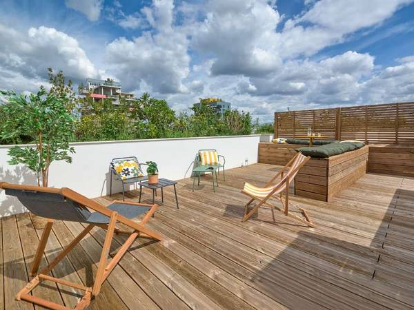 Cinq chambres disponibles dans un grand appartement avec balcons et grand rooftop avec vue dégagée en 360°, entièrement meublé, situé à Asnières s/Seine, à proximité de Paris, de la Gare RER C Les Grésillons.