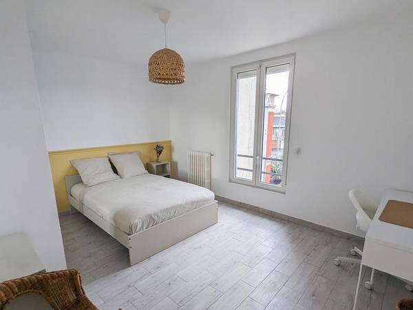 Grande maison en coliving, meublée, entièrement refaite à neuf composée d’un RDC commun avec une grande cuisine, d’un salon salle à manger, une buanderie, une arrière cuisine, 2 WC et une terrasse à l'extérieur de 50m2 ! La cuisine est toute équipée, avec de nombreux rangements. Chaque chambre est sécurisée par un code sur la porte.