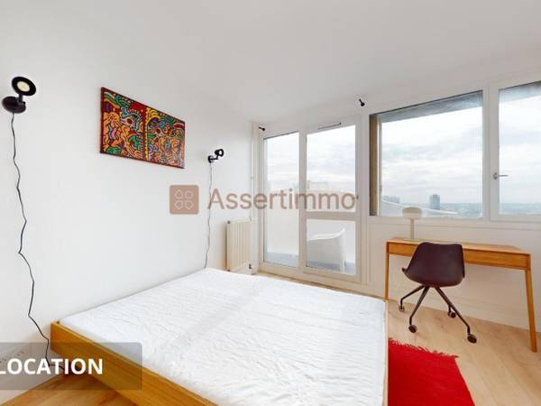 L’appartement • Superficie totale : 74 m² • Colocation : 4 chambres • Étage : 13ᵉ avec ascenseur • Résidence design années 70, entretenue et sécurisée (gardien) 🟢 Atout majeur : chaque chambre et le séjour disposent d’un balcon.