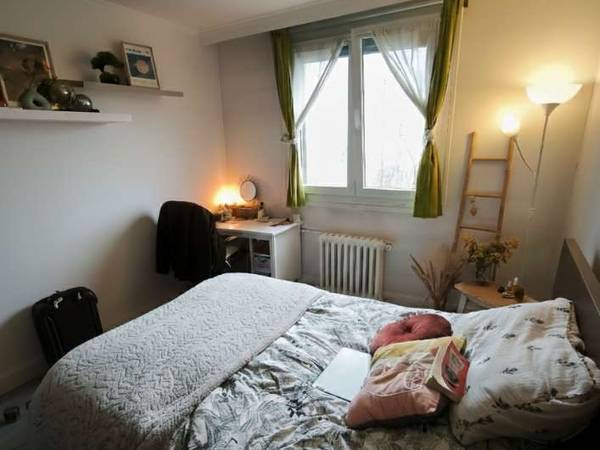La chambre que je libère est meublée 🛋️ (lit avec matelas neuf, couette et oreillers inclus, un grand dressing, bureau, chaise, table de chevet, lampadaire), il n'y a plus qu'à ramener ses valises 😊 La chambre donne coté parc avec peu de vis à vis, la vie y est très calme. 🌳