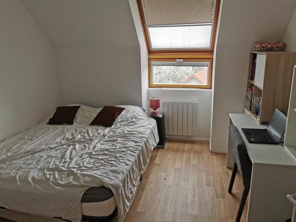 Chambre de 12m2 dans appartement en duplex de 96m2. Salle de bain et toilettes privatifs, partagés avec le second locataire (2 chambres louées). Cuisine et salon partagés aussi avec le propriétaire. Proche transports, stationnement gratuit, centre-ville 12 minutes à pied, Lycée Jacques Amyot 5 minutes à pied. Fibre. Eligible APL.