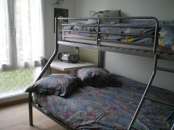 Chambre meublée dans appartement type F3, d'une résidence calme, 2em étage avec ascenseur. Située à environ 15mn à pied de la gare de Saint Quentin en Yvelines (ligne U pour la Défense, SNCF ligne N pour Montparnasse et ligne C du RER), du Vélodrome, de l'Ecole de médecine, l'ESTACA, et face à l'UVSQ, proche toutes commodités et centre commercial. Proximité golf national et Versailles. La chambre comprend un lit 2 places, un lit mezzanine, une table, un placard avec étagères et penderie. Fenêtre donnant sur jardin. Cuisine, salle de bain, WC séparés à partager. Draps et serviettes fournis.