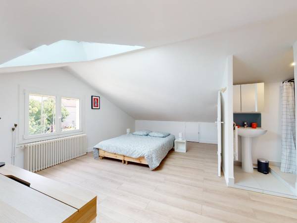 🏠 LES ESPACES COMMUNS Cette maison comporte un rez-de-chaussée, deux étages et de cinq chambres. La pièce de vie du logement située au rez-de-chaussée se compose d’une grande cuisine très bien équipée (four, micro-ondes, plaques de cuisson, lave-vaisselle, etc.) et ouverte sur un salon muni d’un ensemble de canapés et fauteuils, d’une table basse, d’un meuble TV et d’une TV. Un grand espace commun bureau et une buanderie équipée de machines à laver viennent compléter ces espaces. Au 1ᵉʳ étage, se trouve quatre chambres dont trois disposants d’une salle d’eau et d’une salle de bain commune, d’un WC indépendant, et d’une chambre avec accès à une salle d’eau privative. Toutes les chambres du premier étage ont accès à un agréable balcon. Au 2ᵉ étage se trouve la dernière chambre du logement, elle aussi équipée d’une salle d’eau privative.