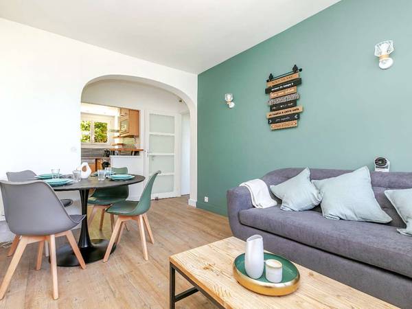 - Salon : vidéoprojecteur, canapé - Cuisine équipée : réfrigérateur, congélateur, plaques à induction, four, micro-ondes, lave-vaisselle, ustensiles et couverts - Salle de bain : lave-linge et sèche-linge neufs, baignoire - WC séparés