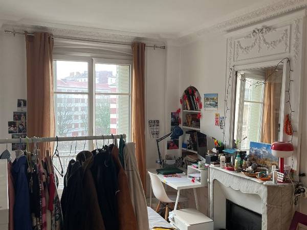 Je m'appelle Alice et je suis en coloc avec Sophia et Tristan. Je quitte le logement alors on cherche quelqu'une pour le remplacer ! L'ambiance à l'appart est plutôt simple, on fait des apéros de temps en temps mais pas encore eu l'occasion de faire une vraie soirée (je pense que les voisins nous en remercient). Appart parisien très charmant : haut sous plafond, parquet, cheminée dans toutes les chambres (inutilisables mais trop belles)