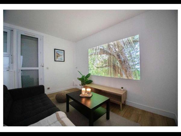 Salon/salle à manger lumineux avec vidéoprojecteur pour des soirées cinéma inoubliables entre colocataires 🎬