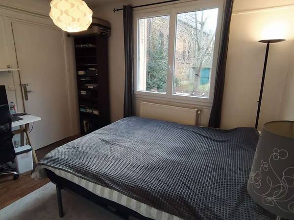 - Lit double (2 matelas latex 25 cm) - Placard encastré avec penderie - Etagères - Bureau scandinave - Smart TV 80 cm