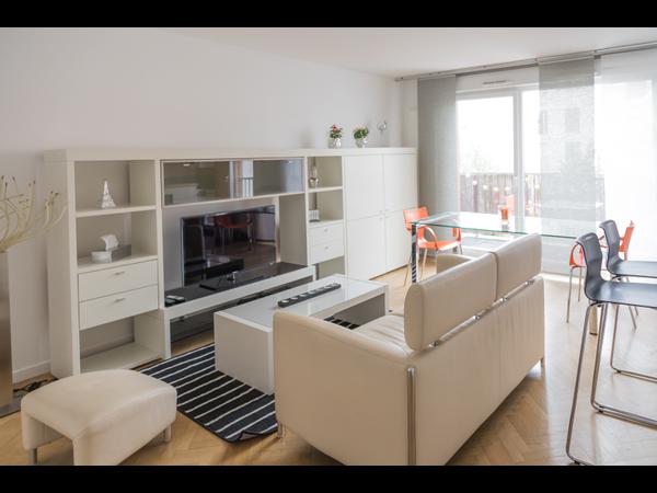 -- Avantages - Grand séjour avec canapé cuir, une table pour recevoir des amis - Internet fibre, WIFI très haut débit - Jardin commun dans la résidence très bien entretenu - Balcon aménagé avec vue Tour Eiffel - Quartier calme - Résidence sécurisée avec portail, Digicode, et caméras de vidéo surveillance - Commerces à proximité de l’immeuble