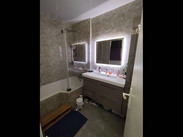 cuisine avec plaque à induction, tous les électroménagers sont neuves salle de bain avec miroir à led et grande baignoire. appartement fibré free.