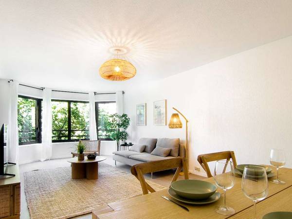️ 🛋️ LES ÉQUIPEMENTS - cuisine équipée pour la vie à plusieurs : frigo, lave-vaisselle, machine à café, four, ustensiles… - lave-linge, sèche linge - literie hôtelière (140 cm * 200 cm) - douche vasque avec rangements, miroirs éclairants - mobilier design - double vitrage - TV - bâtiment sécurisé - garage à vélos