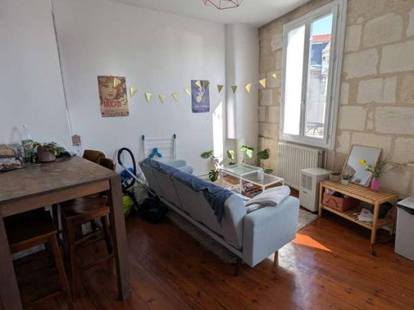 Colocation T3, 52 m2 aux Chartrons Dans un bel immeuble en pierre, une chambre se libère. Cet appartement est meublé et comprend : une entrée, deux chambres, un WC, une salle d'eau, et surtout un grand séjour avec cuisine ouverte. Il est situé dans le très pittoresque quartier des Chartrons, à proximité du Jardin Public, à 1 min à pied de l'arrêt de tram Camille Godard (lignes C et E), et à 3 min à pied des lignes de bus 5 et 15. La chambre qui se libère est la plus grande des deux. Elle est meublée d'un lit double, de deux commodes, ainsi que d'un bureau. Le loyer est de 600€, auxquels s'ajoutent 50€ de charges (gaz, électricité). Le dépôt de garantie est de 1000€. Tu cohabiteras avec Lucie, médiatrice culturelle, qui cherche dans l'idéal une colocataire également dans la vie active. La chambre se libère le lundi 23 mars. Contacte-moi si tu es intéressée !