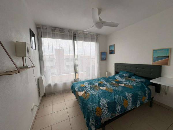 Chambre meublée 9,5 m² orientée Ouest avec baie vitrée avec accès à la terrasse Salle d'eau privative pour la chambre (douche lavabo bien éclairée)