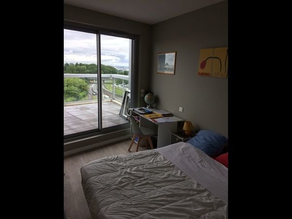 Appartement 100m² chez l'habitant. Lit 2 places, bureau, chaise, grand placard penderie, commode, baie vitrée sur très grande terrasse Située dans un F4 au 5 ieme étage avec ascenseur, tout l appartement est à la disposition du locataire: salle d’eau avec douche à l'italienne et wc, + un wc séparé, cuisine entièrement équipée, lave vaisselle, réfrigérateur, congélateur, micro ondes, plaques à induction, machine à café machine à laver. Tout est à disposition. TV INTERNET WIFI. FIBRE draps couvertures serviettes de bains fournis Air conditionné. Parking sécurisé. Commodités: TRAM ligne E arrêt Palmer au pied de la résidence. Cette résidence bordelaise vous permettra de bénéficier du confort d'un bâtiment neuf et moderne et d'être proche des campus Bastide, (11 minutes en tram) l'ESPI, l'IAE de Bordeaux, l'IUT, la fac d'Eco, ESPI, ESMA, ESSCA, UBISOFT, PUSG, PESMD mais aussi ESMOD, Sup de Pub, INSEEC... Hôpital Bordeaux rive droite à 200 m, Cabinet médical au pied de la résidence, magasin Carrefour et sa galerie marchande à 200 m. Situation: Haut Cenon à 15 minutes de centre de Bordeaux et 10/12 minutes des facultés, 20minutes de la gare St Jean. A 6 minutes de la plateforme intermodale de Cenon gare qui offre des connections vers Bordeaux St Jean, les Landes, Arcachon, Saintes, Perigueux, Limoges, La Rochelle, Brive, Sarlat, Bergerac etc etc. La résidence est récente, mai 2018. Conviendrait à un étudiant, un salarié ou personnel médical vu la proximité de l’hôpital. NON FUMEUR VACCINE COVID 19 Disponible 10/2025 Loyer mensuel payable d’avance de 520€. Toutes les charges sont comprises taxes eau Electricité, Gaz, Chauffage. Internet imprimante et les lessives c est cadeau Animaux non admis Dépôt de garantie 460€. Ouverture à l'APL
