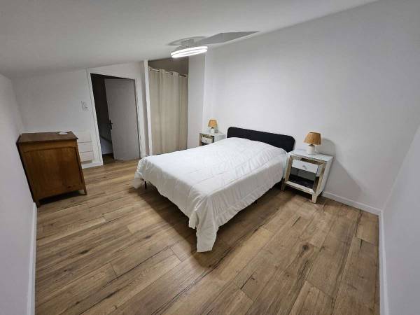 Dans un T4 en duplex de 88 m2 entièrement meublé avec balcon, à louer chambre meublée avec sa salle de bain et ses toilettes privées (tout l'étage du duplex), au total 29 m2 privés.