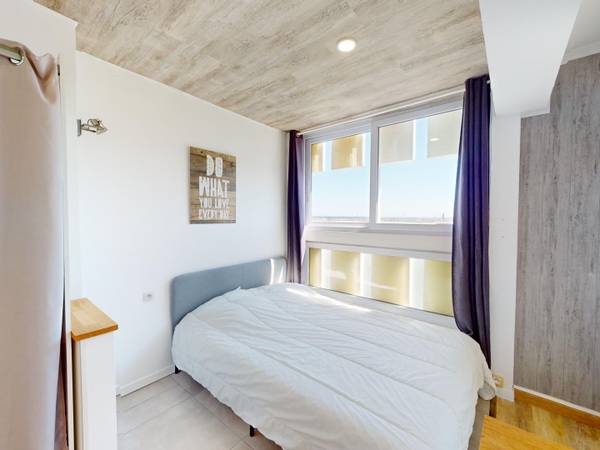 🏠 LES ESPACES COMMUNS L'appartement est composé : D'un salon meublé d'un canapé, d'une table haute ainsi que d'une télévision. La cuisine est équipée de meuble de rangement, d'un four, d'une plaque de cuisson, d'une hotte et d'un micro-ondes. Deux Salles d'eau avec douches, meubles vasques, miroir (un lave-linge est présent dans l'une des pièces d'eau). D'un Wc et de trois autres chambres. La fibre y est disponible, pour un accès internet haut débit. L'appartement est équipé d'un chauffage individuel électrique et est situé au 14ᵉ étage d'un immeuble avec ascenseur.