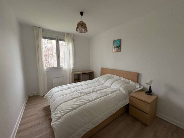Appartement de 81 m² avec 4 chambres en colocation dans le quartier des Eyquems à Mérignac. Ce bien refait à neuf est composé d'un salon/séjour, d'une cuisine aménagée et équipée, d'une salle d'eau et d'un WC. Appartement confortable, proche de toutes commodités. A seulement 5 minutes à pied de l'arrêt de tramway 'Les Quatre Chemins' et à 2 minutes de l'arrêt de bus. Les commerces sont accessibles à 300 mètres. Ce bien est idéal pour une personne seule ou un étudiant. Forfait mensuel charges incluant électricité, chauffage, eau froide et chaude, internet, taxe ordure ménagères, ménage des communs Chambre 1: 11,62 m² avec lit double 140/190cm, bureau et placard prix 550 euros charges comprises Chambre 2 : 10,74 m² avec lit double 140/190cm, bureau, armoire et 1 un balcon prix 550 euros charges comprises Chambre 3 : 9,40m² avec lit double 140/190cm, bureau et placard prix 530 euros charges comprises Chambre 4 : 10,26 m² avec lit double 140/190cm, bureau et placard prix 530 euros charges comprises