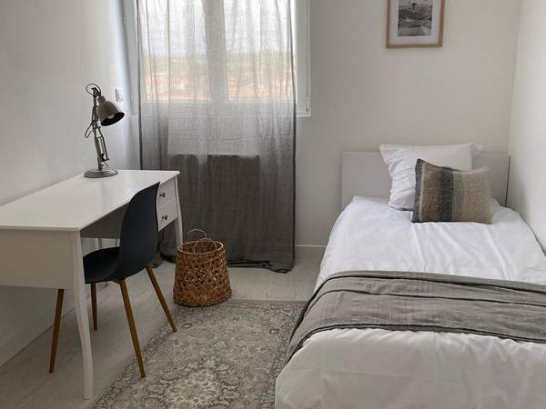 Colocations de 4 chambres meublées avec 2 salles de bain. Superficie totale du bien : 80m². Située à Merignac quartier Capeyron, au 5ème étage avec ascenseur. Dans résidence sécurisée avec places de parking libre (portail sécurisé). - 5min à pieds de l'arrêt "Frères Robinson" Tram A - 10 min à pieds du centre ville de Mérignac , 5min du centre de Capeyron - 15 min en voiture du centre de Bordeaux - Lignes de bus en bas de l'immeuble 11, 16, 35 - 3 min rocade bordelaise - À proximité de commerces et supermarchés (Intermarché, boulangerie, pharmacie, Mcdo, ...)