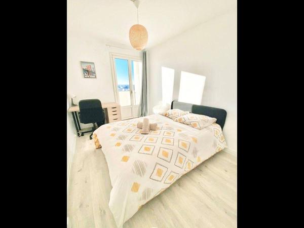 ℹ️ Informations générales : Type de bien : Colocation appartement Bail individuel meublé 1 an (courte durée possible : bail mobilité max. 10 mois, bail précaire pour les séjours de quelques mois, ⚠️ N'hésitez pas à nous solliciter pour besoins spécifiques ) Logement éligible APL Surface habitable : 99,03 m² Nombre de chambres : 6 (1 personne par chambre) Étage : 10ᵉ avec ascenseur Chauffage : collectif État général : rénové Annexes : Balcon, parking Parties communes : cuisine, salon et salle à manger , 2 salles d’eau, WC, buanderie et nombreux rangements communs