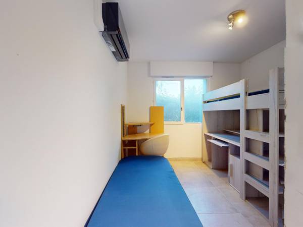 🛌 LA CHAMBRE Cette chambre dispose d'un lit mezzanine avec bureau intégré, un second bureau d'angle avec un fauteuil ainsi qu'un second lit simple. Cette chambre est équipée d'une climatisation réversible avec pompe froid/chaud.