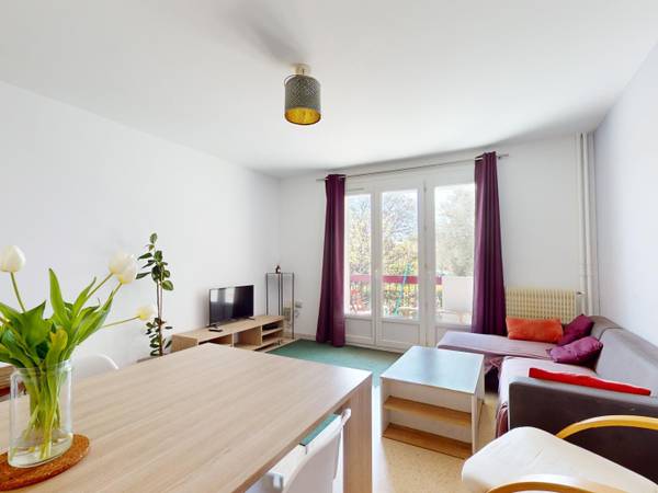 🏡 LES ESPACES COMMUNS Son intérieur inclut un salon avec un canapé convertible, un fauteuil, une table à manger ainsi qu'une télévision, deux autres chambres, une cuisine équipée d'un four, d'un micro-ondes ainsi que d'une plaque de cuisson et une salle de bains avec douche et sèche-serviette. Cet appartement de 4 pièces possède un chauffage collectif. Il possède la fibre. Il est situé au rez-de-chaussée d'un immeuble.