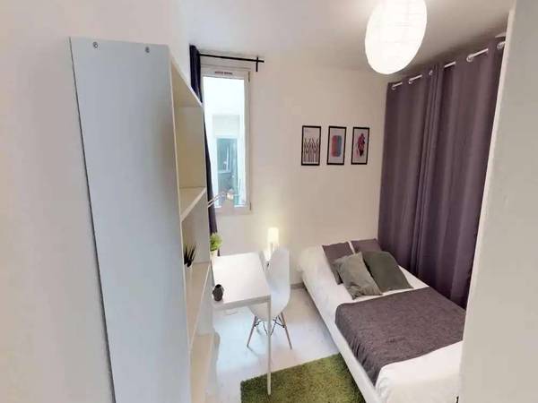 17 Daru - chambre 1 English Version below 🏡 Coloc de 4 chambres - Appartement de 87m² tout équipé Chambre lumineuse et moderne de 11m² avec joli espace de travail 🚇 Tramway 3 - Plan Cabanes Quartier Gambetta - Montpellier 💡 Charges incluses : eau, électricité, internet, assurance… Assistance et maintenance tout au long du séjour si nécessaire 🛏️ 100% meublé et équipé (literie complète, électroménager, bureau, vaisselle…) Visite virtuelle et réservation simple et rapide en ligne 📝 Bail individuel et éligible aux APL (aide CAF) Démarches administratives réduites et durée de location flexible ! 🙌🏻 Futurs colocs : jeunes actifs et étudiants français et internationaux Équipe trilingue disponible pour vous aider dans votre recherche —--------------------------------------------------------------------- 🏡 4-bedroom Roommate - 87m² fully-equipped apartment Bright, modern 11m² bedroom with attractive workspace 🚇 Tramway 3 - Plan Cabanes Gambetta district - Montpellier 💡 Bills included: water, electricity, internet, housing insurance… Assistance and maintenance throughout your stay if necessary 🛏️ Fully furnished and equipped (bedsheets, household appliances, desk, dishes…) 3D tour and online reservation 📝 Individual contract and CAF housing subsidy possible Reduced administration and flexible length of stay ! 🙌🏻 Future flatmates: French and international students and young professionals Trilingual team available to help you out in your accommodation search !