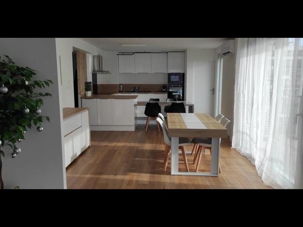 Coup de coeur assuré pour cet appartement refait entièrement a neuf situé au 6 étage dans résidence très calme. Appartement double exposition sud et ouest ,baigné de lumière. Tous les commerces à proximité arrêt de bus au pied de la tour. Grande pièce à vivre cuisine ouverte salle à manger salon de 43mètres carré. A louer deux chambres de 12m avec rangement bureau lit en 140 et terrasse fermée privative une salle de bain double vasque en commun loyer 499 euros charges comprises. Tous les chambres sont équipées de fermeture privative. Climatisation réversible dans toutes les pièces Cuisine équipée. Cet appartement neuf n'attend plus que vous pour des moments de convivialité et de partage