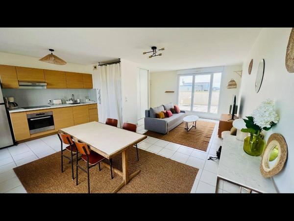 L’appartement : • 🛏️ 4 chambres meublées (literie neuve, bureau, rangements) • 🛁 1 salle de bain privative + 1 salle de bain partagée • 🚽 2 WC séparés • 🛋️ Grande pièce de vie de 35 m² avec double terrasse, cuisine équipée, TV connectée • ⚙️ Équipements : lave-linge, sèche-linge, machine à café, vaisselle…