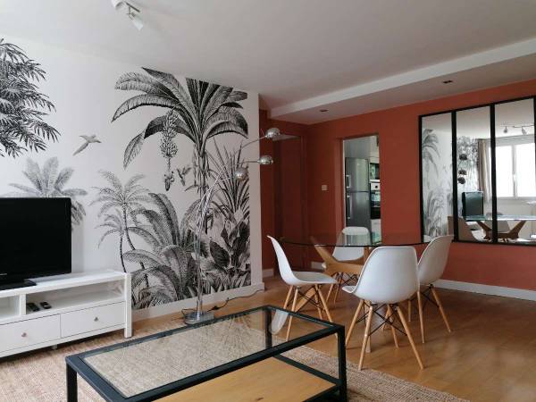 Grand appartement de 105m2 agréable pour coloc à 4 sans se marcher dessus. Traversant et lumineux, sans vis à vis et bien agencé pour la colocation: espaces jour et nuit séparés, 2 SDB, 2 WC.