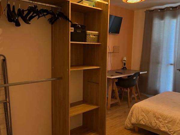 Chaque chambre privative est équipée d'un lit double, d'un bureau, d'un dressing et d'une TV murale. Salle de bain et WC indépendant partagés.