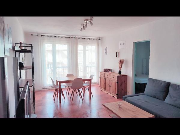 Salon: - Grand canapé d'angle convertible - Table avec chaises (6) - Buffet - Une bibliothèque - Une table basse - Une TV sur un meuble TV avec stéréo et box TV (Chromecast intégré) - Box internet (fibre)