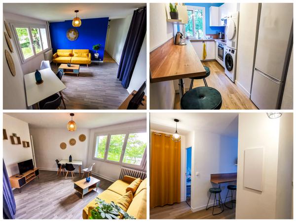 🏠 Côté appartement : aménagé avec goût. Il est composé d’une belle pièce à vivre, d’une cuisine entièrement équipée (four, frigo, micro-ondes, plaques induction), de 3 chambres, d'une machine à laver, d'un sèche-linge, d’une salle d’eau et d’un WC indépendant.