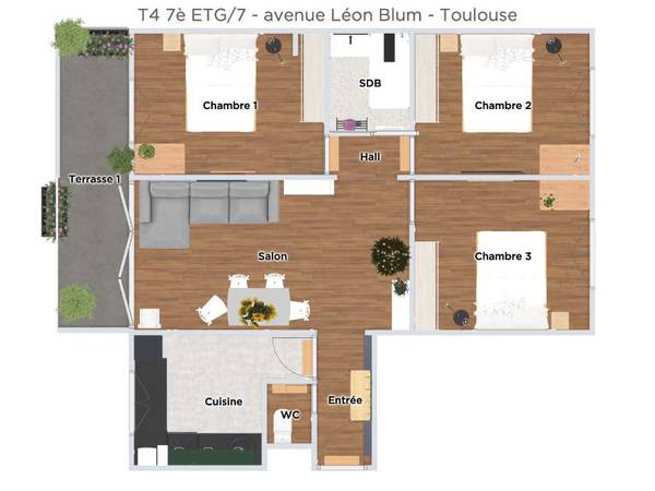 L’appartement jouxte le nouvel éco-Quartier Guillaumet (Associations sportives, salles de Gym) et le parc de l’observatoire à 5 min à pieds de la résidence.