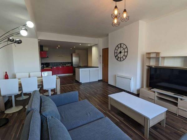 L’appartement comporte : - 3 chambres avec lits 140x200cm (literie complète : matelas, couette, oreillers), tables de chevet et lampes, bureaux équipés (lampes et fauteuils de bureau) et grands dressings avec miroir - Grand séjour avec un grand canapé à méridienne, grande télévision (4K, 125cm de diagonale), étagère de rangement et table à manger - Cuisine équipée (plaques de cuisson, four, frigo, lave-vaisselle, micro-onde, cafetière, bouilloire, grille-pain et toute la vaisselle nécessaire) ouverte sur le séjour avec ilot-bar, grand placard de stockage (nécessaire de ménage inclus, aspirateur, serpillère, balai…) - Salle de bain avec douche ET baignoire, vasque et miroir - Toilettes WC séparés - Lave-linge séchant (étendoir à linge, fer et table à repasser fournis)