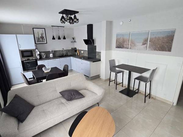 Les parties communes sont composées de : • Grand séjour avec canapé, table à manger, coin table haute, TV 4K • Cuisine entièrement équipée (lave-vaisselle, four, plaques induction…) • Salle d'eau avec machine à laver séchante. • Cellier avec de nombreux rangements • Entrée avec placard de rangement • Internet Fibre très haut débit (wifi et TV) • De nombreux équipements neufs (Canapé, Literie (linge de lit et serviettes de bain fournis), TV, machine à laver, placards chambre, équipements cuisine • Accès au parc privé et entièrement clos de 1 ha de la copropriété • Cave + local à vélo sécurisé • 1 place de parking dans parking sous terrain (badge d’accès) pour 50€/mois