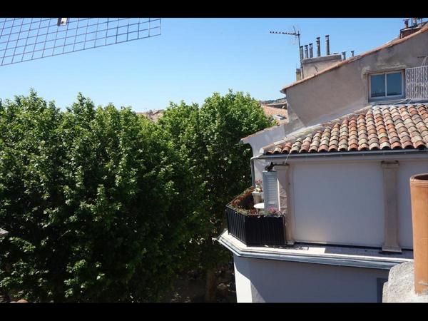 T3- Aix-en-Provence (13100)-Centre Historique -2 chambres climatisées -78 m² Grand T3 (78 m2 habitables -63 M2 Loi Carrez ) sur les toits d'Aix, meublé, climatisation réversible - proche de tous les commerces et de l'IEP. Idéal pour un jeune couple ou en colocation. Situé dans l'hypercentre d'Aix. La terrasse est aménagée d'une table et quatre chaises.
