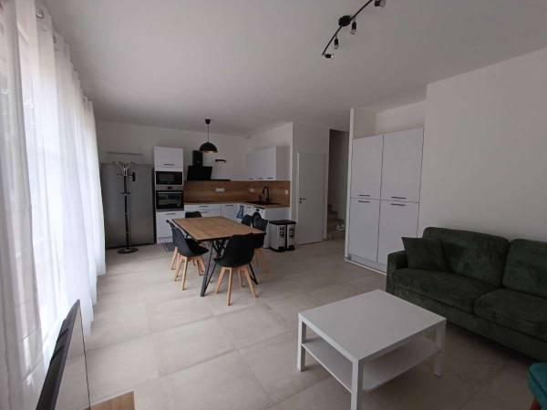 clim dans toutes les pièces, grandes chambres de 14-15 m2, prises RJ45 dans toutes les pièces, wifi, grande armoire, bureau, lit 160x200. 2 salles d'eau, 2 wc, grand parking dans propriété, exposition sud, lumineux, équipement neuf et de qualité loyer 590 € + 80 € de provision de charges comprenant tout, électricité, chauffage, eau, eau chaude, ordure ménagère, taille des haies... calcul au réel annuellement, caution de 590 € engagement uniquement sur son loyer et en collectif pour les charges. location simple et rapide,