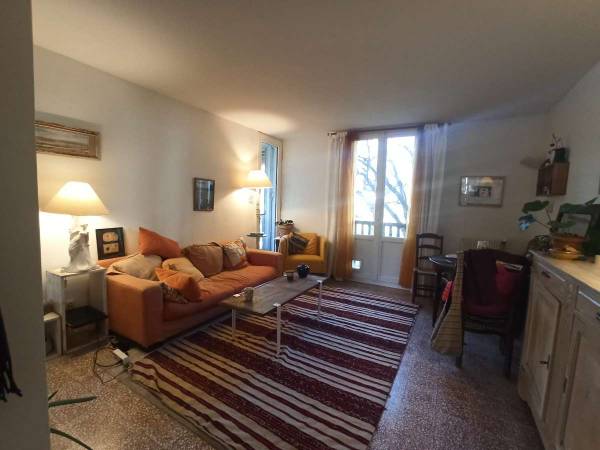 La résidence donne sur un parc côté salon, l'appartement étant situé en rez de chaussée surélevé. Il y a de nombreuses places de parking juste devant l'immeuble. Tout ce qu'il faut à proximité en petits commerces, plusieurs bus pour aller en centre ville ou vers les facs et même une ligne directe vers Marseille. On est également juste à côté du parc de la Torse et de la promenade du Val de l'Arc.