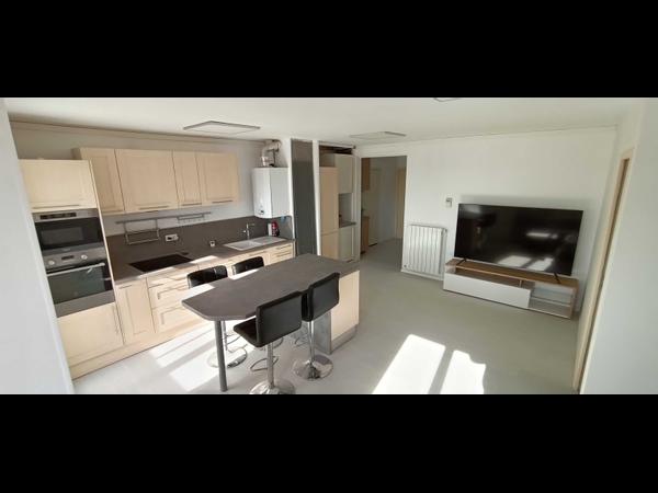 Le salon a décoré avec gout :D et est ouvert sur une cuisine moderne pour les cuistots en herbe ( four, micro onde, plaque à induction et lave vaisselle au programme ! ). L'appartement dispose également d'un wc, d'un grand cellier et de 2 salle de bain parce que 1 c'est bien mais 2 c'est mieux ! :)