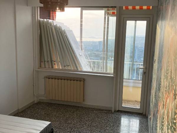 L'appart se trouve au 19ème étage d’un bâtiment à la Rouviere dans le 9ème arrondissement, fait 85m2 avec 4 Chambres, un salon commun et une cuisine + débarat séparés. Le coin est tranquille avec toutes les commodités a 5 min a pied. Du balcon communicant, il y a une vue imprenable sur Marseille et la mer et de la fenetre de la cuisine il y a une vue dégagée sur les calanques.