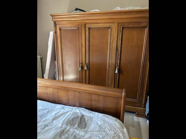 Superbe chambre, mobilier de style, lit, chevet, armoire, secrétaire + un petit placard. Climatisation individuelle. Dans un appartement de 91m², comprenant 3 chambres, salon, cuisine, salle de bain, WC séparés. Toutes les pièces principales sont orientées Sud - Sud Ouest et sont bordées d'un balcon.