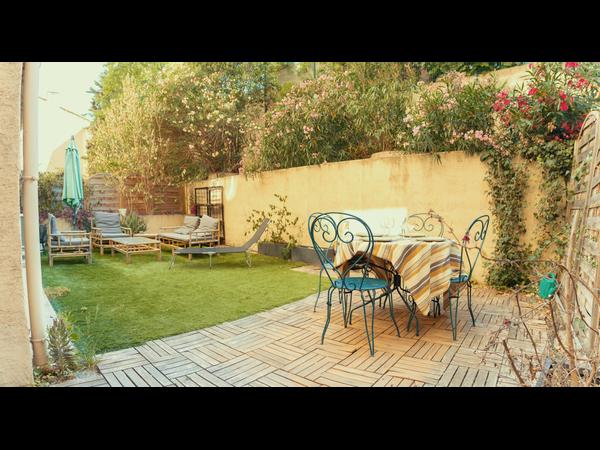* Terrasse : - Salon de jardin (fauteuil, canapé, table basse) - Transat - Parasol - Table à manger + 4 chaises - Exposition sud-ouest