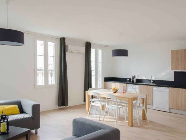 🧑🤝🧑 L’APPARTEMENT Profitez d’une chambre privée 4*, avec un lit double canapé-lit, un bureau et du rangement, dans un appartement pensé pour la vie à plusieurs: cuisine ouverte équipée, salon lumineux, salle de bain avec cabine de douche et WC.