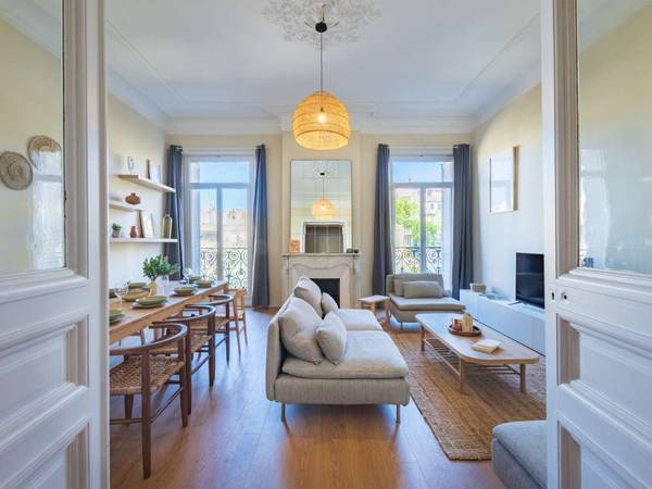 🧑🤝🧑 L’APPARTEMENT Profitez d’une chambre privée 4* climatisée, avec un lit double, un bureau et du rangement dans un grand appartement aux superbes volumes pensé pour la vie à plusieurs: cuisine ouverte ultra-équipée, grand salon lumineux avec moulures vitraux, trois toilettes, quatre salles de bain et une buanderie.