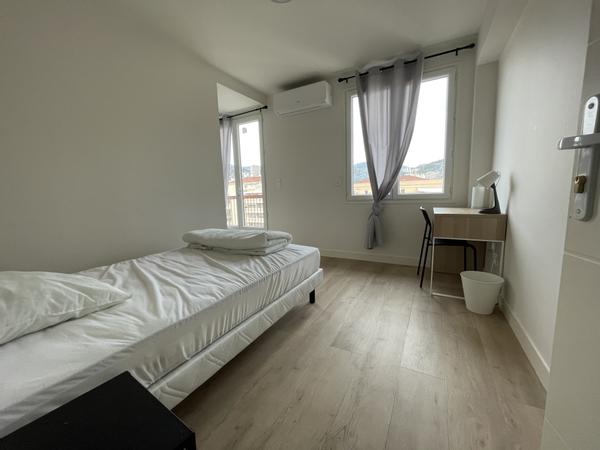Chambre disponible pour étudiant(e) ou jeune actif dans un appartement meublé avec une grande terrasse exposée SUD sans vis a vis, arrêt de bus Lyautey en bas de l'immeuble.