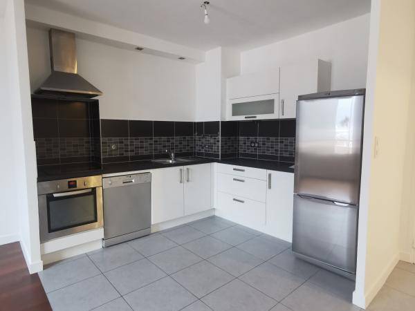 Cet appartement est composé d'une entrée avec placards de rangements, une cuisine équipée (four, plaque de cuisson, hotte, lave-vaisselle, réfrigérateur) ouverte sur séjour, une chambre, une salle de bains avec baignoire et un wc séparé.